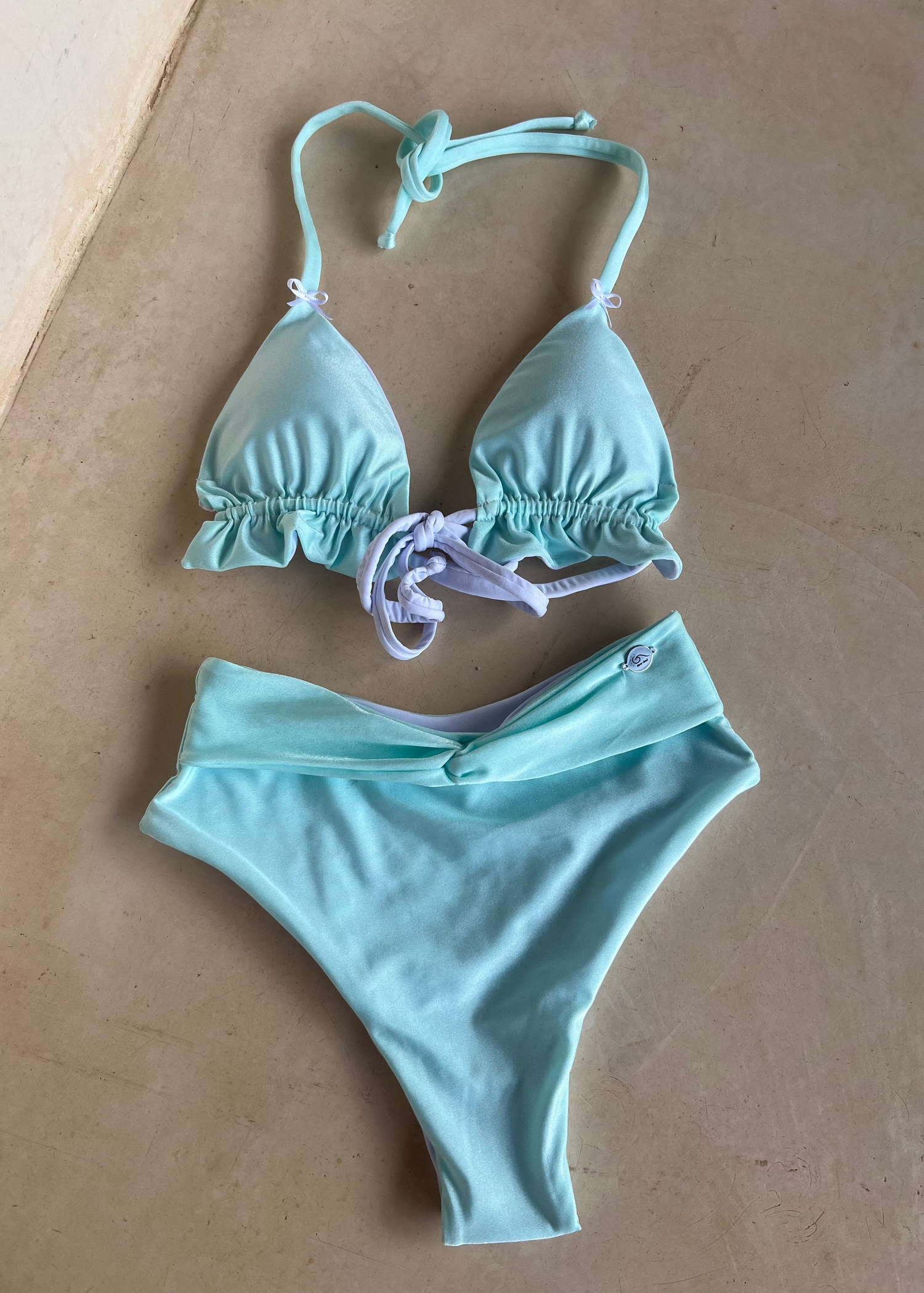 The Mint triangle top features bow details and a customizable and comfortable fit. Create a timeless set by pairing this bralette-style bikini top with the matching Mint and Ballet Mind Bottoms.